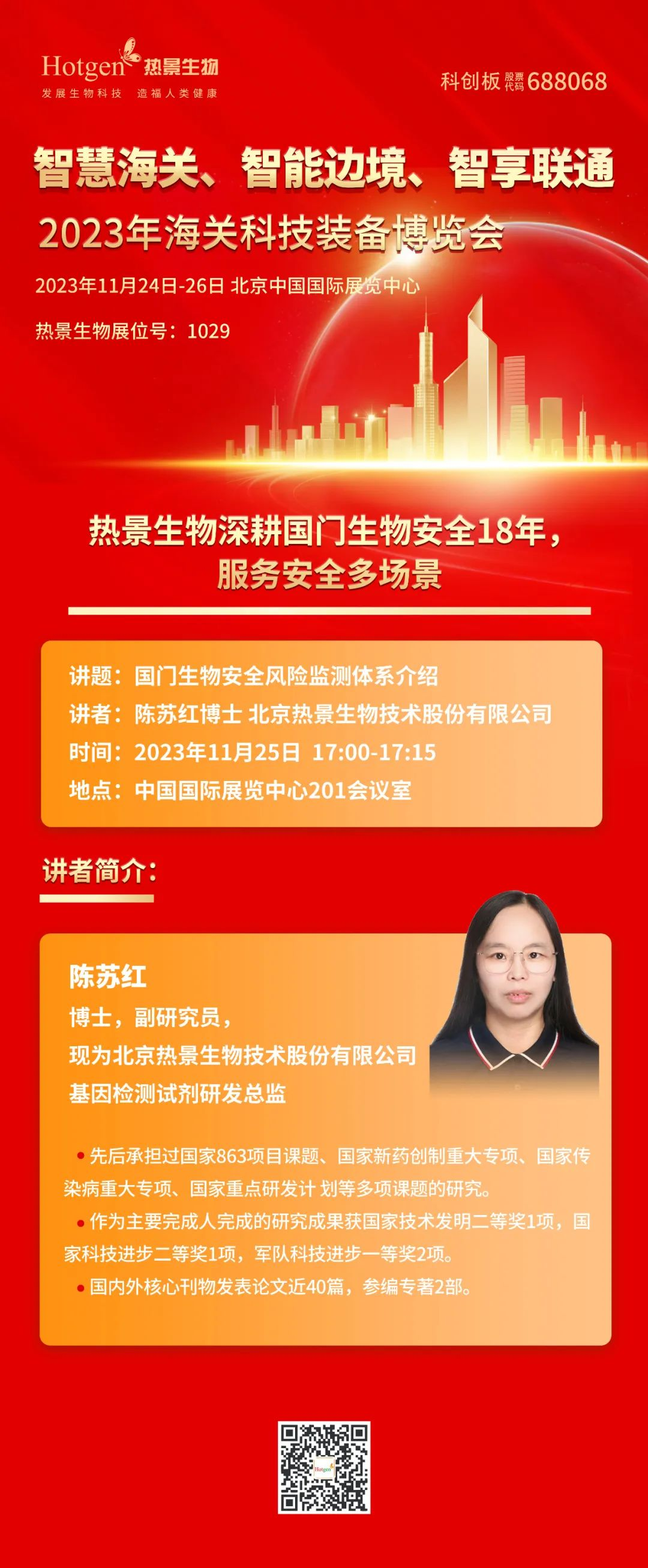 作為醫(yī)學(xué)與公共安全檢測領(lǐng)域先進(jìn)制造商,熱景生物擁有服務(wù)公衛(wèi)安全多場景解決方案和專業(yè)經(jīng)驗,相關(guān)產(chǎn)品廣泛應(yīng)用于海關(guān)檢疫、生物安全、食品安全、疾控應(yīng)急、糧食飼料工業(yè)、藥物濫用等領(lǐng)域。本次關(guān)博會,熱景生物將攜國門生物安全整體解決方案亮相大會,并做大會演講,歡迎蒞臨交流。
