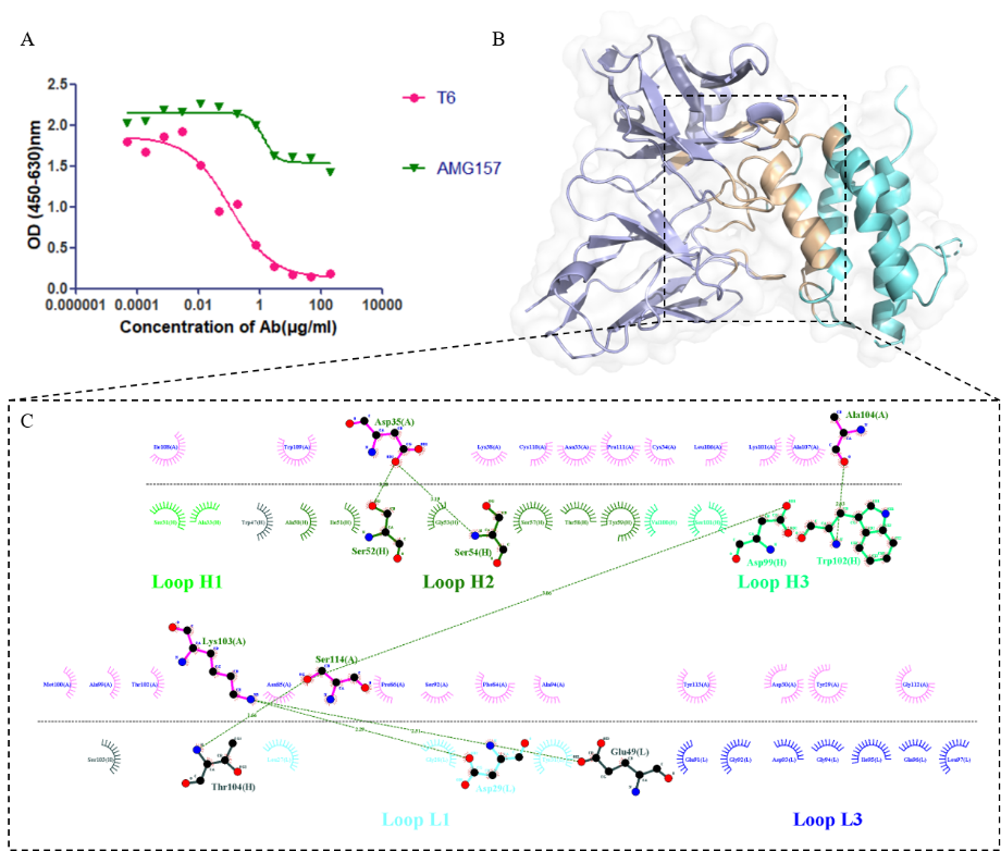 來源于上皮細胞的細胞因子胸腺基質(zhì)淋巴生成素(thymic stromal lymphopoietin,TSLP)參與哮喘炎癥通路的啟動。帶正電荷的TSLP與胸腺基質(zhì)淋巴生成素受體(TSLPR)形成二元復(fù)合物,隨后與白細胞介素-7受體α鏈(IL-7Rα)結(jié)合形成三元復(fù)合物,該復(fù)合物在共表達TSLPR和IL-7Rα的細胞中通過STAT5通路激活信號轉(zhuǎn)導(dǎo),導(dǎo)致炎性細胞因子的釋放。因此,靶向TSLP及其信號通路的抗體藥物被認(rèn)為是治療哮喘的有效策略。