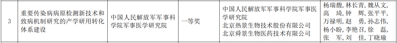 近日,北京市人民政府發(fā)布《北京市人民政府關(guān)于2023年度北京市科學(xué)技術(shù)獎(jiǎng)勵(lì)的決定》,中國人民解放軍軍事科學(xué)院軍事醫(yī)學(xué)研究院、北京熱景生物技術(shù)股份有限公司、北京舜景生物醫(yī)藥技術(shù)有限公司聯(lián)合申報(bào)的“重要傳染病病原檢測(cè)新技術(shù)和致病機(jī)制研究的產(chǎn)學(xué)研用轉(zhuǎn)化體系建設(shè)”項(xiàng)目,榮獲“2023年北京市科學(xué)技術(shù)進(jìn)步獎(jiǎng)一等獎(jiǎng)”,這是繼公司獲得國家技術(shù)發(fā)明二等獎(jiǎng)、中華醫(yī)學(xué)科技獎(jiǎng)二等獎(jiǎng)、民營科技發(fā)展貢獻(xiàn)獎(jiǎng)科技創(chuàng)新一等獎(jiǎng)、上海市科學(xué)技術(shù)二等獎(jiǎng)之后的又一重磅獎(jiǎng)項(xiàng),充分體現(xiàn)了熱景生物在高水平科技自立自強(qiáng)、打造科技創(chuàng)新核心競(jìng)爭(zhēng)力道路上的不懈追求和綜合實(shí)力。
